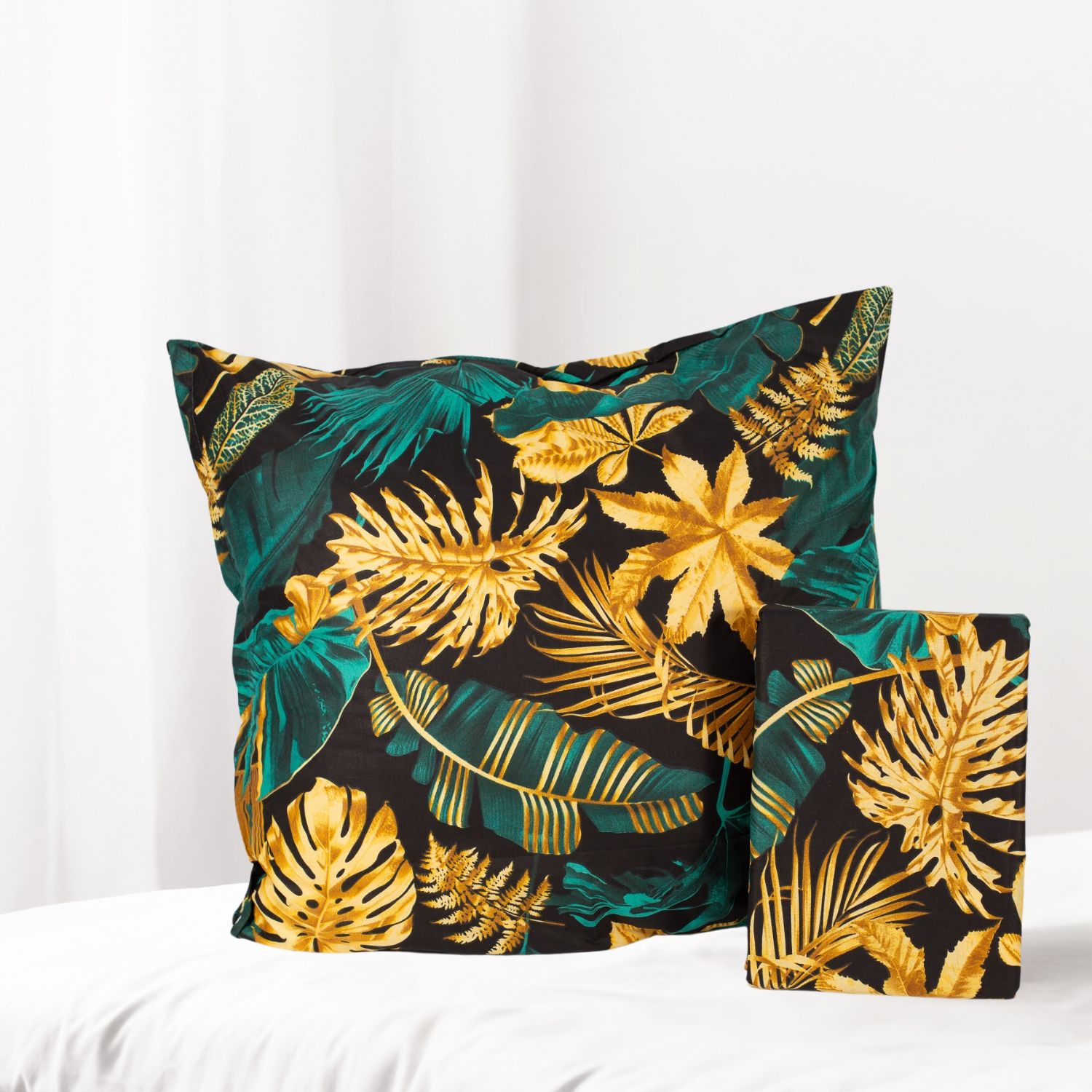 Motywy egzotycznych liści w odcieniach żółci i zieleni dodają wnętrzu energii i świeżości. Pościel idealnie wpisuje się zarówno w nowoczesne, jak i klasyczne aranżacje, wprowadzając odrobinę wakacyjnego klimatu do Twojej sypialni.